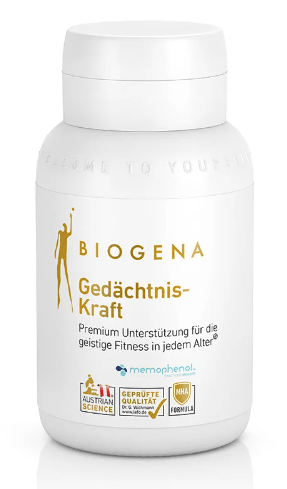 Der moderne Lebensstil fordert das Gedächtnis und die kognitive Leistung. Zur optimalen Unterstützung der geistigen Fitness bietet das neue Premiumpräparat Biogena Gedächtnis-Kraft Gold daher eine Kombination aus dem patentierten Pflanzenextrakt Memophenol™ mit Citicolin (Cognizin®) und einer gezielten Auswahl an Vitaminen und Spurenelementen.